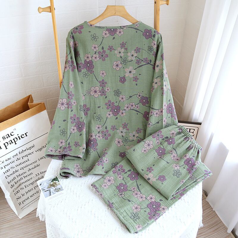 パジャマ 寝巻き レディース ダブルガーゼ 前開き 長パンツ 新作 ルームウェア 和式 和風 上下セット 女性用 春秋 二重ガーゼ 着物 長袖 綿100% 春 夏 部屋着 おそろい 前あき 綿 ナイトウェア 浴衣 ゆったり 吸汗 コットン 四季 ホームウェア | airastore