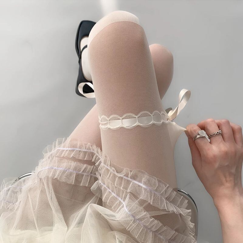 可愛さとセクシーさを兼ね備えたリボン付きストッキング