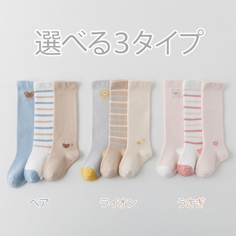 【3足セット】動物柄 ベビー用 ロングソックス 春秋 靴下 ベビー ソックス 赤ちゃん 子供用靴下 子供 女の子 男の子 キッズ 可愛い かわいい ロング丈 ハイソックス 春 秋 通気性 厚手 中厚手 コットン 締め付けない 通園 通学 保育園 幼稚園