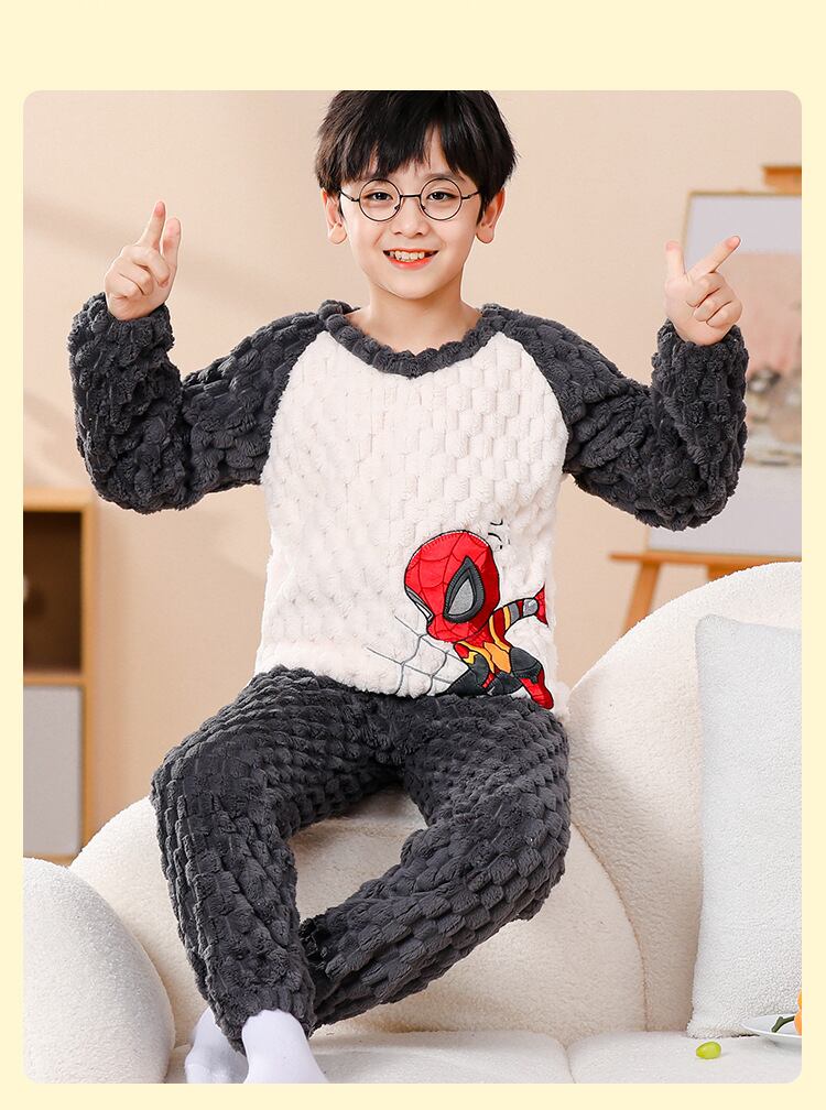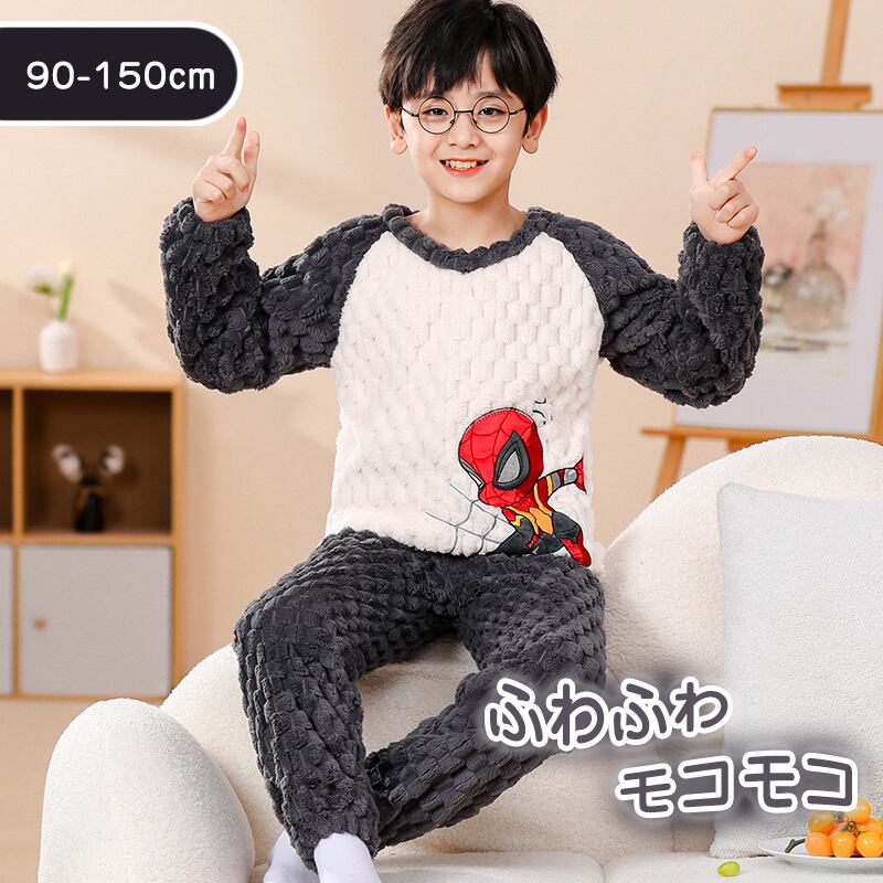 パジャマ ルームウェア 部屋着 寝巻き ナイトガウン 子供 秋冬 長袖 上下セット サンゴフリース キャラクター カートゥーン スパイダーマン ヒーロー 珊瑚フリース ふわふわ モコモコ 暖かい 厚手 柔らかい 保温 防寒 かわいい ins 快適 | airastore