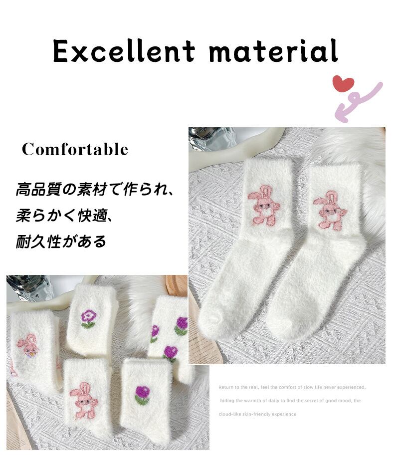 【2足セット】ミンクファー 中筒ソックス 靴下 ルームソックス 産後ソックス スリープソックス あったか靴下 就寝ソックス 秋冬 冬用 厚手 暖かい 保温 もこもこ 防寒 秋冬 冷え防止 冷え対策 かわいい 合わせやすい カートゥーン レディース | airastore