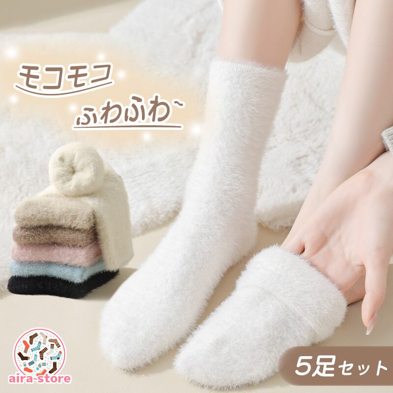 【5足セット】ミンクファー 中筒ソックス 靴下 ルームソックス 産後ソックス スリープソックス あったか靴下 就寝ソックス 秋冬 冬用 厚手 暖かい 保温 もこもこ 防寒 秋冬 冷え防止 冷え対策 かわいい 合わせやすい 無地 シンプル レディース | airastore