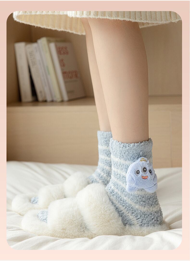 【2足セット】珊瑚フリース 中筒ソックス 靴下 ルームソックス 産後ソックス スリープソックス あったか靴下 就寝ソックス 秋冬 冬用 厚手 暖かい 保温 もこもこ 防寒 秋冬 冷え防止 冷え対策 かわいい キャラクター 怪獣 ストライプ レディース | airastore