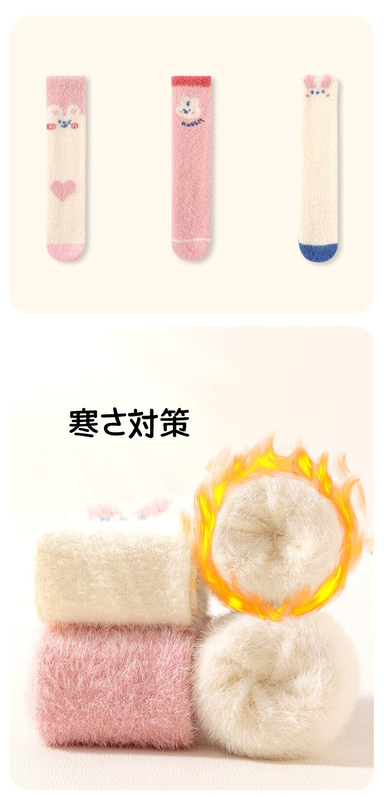 【3足セット】冬 ソックス 靴下 ふくらはぎ靴下 ハイソックス ロングソックス 子供 女の子 ふわふわ 厚手 エコファー ミンクファー風 保温 温かい 寒さ対策 柔らかい 可愛い うさぎ柄 伸縮性 伸びる 履き心地 動きやすい 快適 通園 通学 ルームウェア | airastore