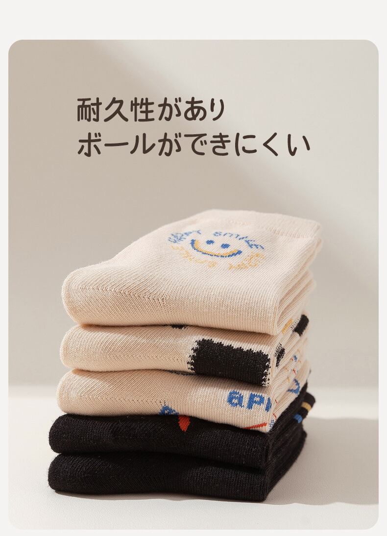【5足セット】秋冬 ソックス 靴下 子供 綿ソックス 笑顔柄 綿 コットン ミディアム丈 Aタイプ 通気性 男の子 女の子 伸縮性 柔らかい 履き心地 快適 可愛い 小学校 お遊戯会 運動会 通園 通学 入学準備 新入学 お出かけ 通学 ファッション | airastore