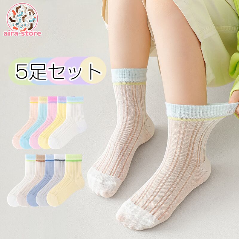 【5足セット】ソックス 夏 子供 薄手 子供用 靴下 通気性 子供向け 可愛らしい キッズ靴下 カラフル ミドル丈 Aクラス品質 女の子 男の子 軽量 イベント用 小学校 お遊戯会 運動会 通園 通学 入学準備 | airastore
