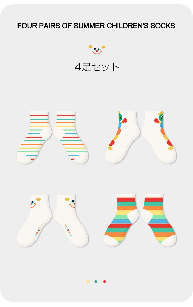 可愛らしさと快適さが満載!夏のお子様にぴったりのカラフルソックス♪