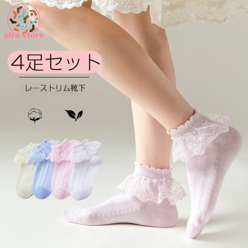 【4足セット】夏 子供 薄手 レースソックス 短丈 ショート 靴下 メッシュ レーストリム かわいい 春秋 プリンセス ソックス 通気性 フリルソックス 長綿 女の子 柔らかい 可愛い キュート 伸縮性 入学式 卒業式 発表会 コンクール 卒園式 入園式 | airastore