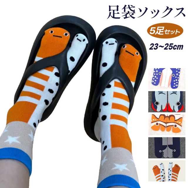 【3足セット】 2本指 足袋ソックス 動物柄靴下 可愛い魚デザイン オレンジ ホワイト ブルー レディース ソックス 男女兼用 カジュアル デイリー おしゃれ 可愛い 面白い ユーモア 履き心地 快適 男女兼用 足元 アクセント ギフト プレゼント おすすめ